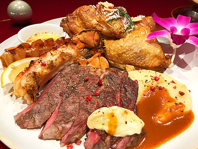 「Mele Kalikimaka(メレ・カリキマカ) サーフ&ターフ シェアプレート」は、ハワイ感満載のサーフ&ターフ。