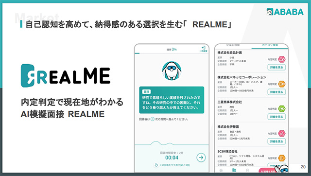 ABABA「REALME」は、就職活動におけるミスマッチの解消をめざして 2024年11月から提供中のサービスで、ローンチ直後から多くの就活生の関心を集め、これまでに累計約6万人が登録。