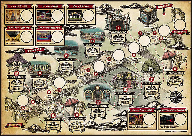 ☆参加方法:1)会場のメインルートと臨海副都心エリア計15ヶ所に設置されたスタンプ台でマップを入手。 2)マップを見ながらスタンプがもらえるスポットを巡る。 3) 各スポットのスタンプをゲット。その場で出されるミッションもいっしょに挑戦。 4)会場内の「CIRCUS KITCHEN(サーカスキッチン)」で集めたスタンプの数に応じてガチャガチャを回し、特典をゲット。 5)参加費:無料