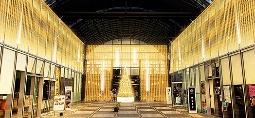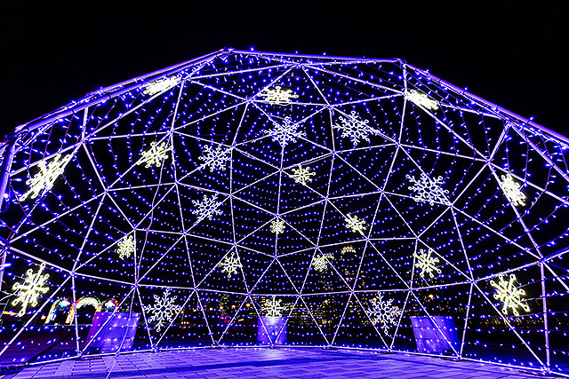 広々としたシンボルプロムナード公園の夢の大橋をメイン会場に、約2km・約18か所におよぶ光の回遊ルートを創出。