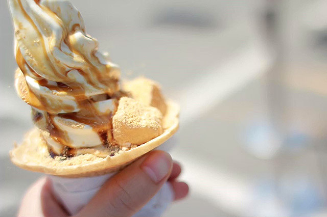 2日目は「桔梗信玄餅工場テーマパーク」を訪れ、人気の桔梗信玄餅詰め放題を体験。