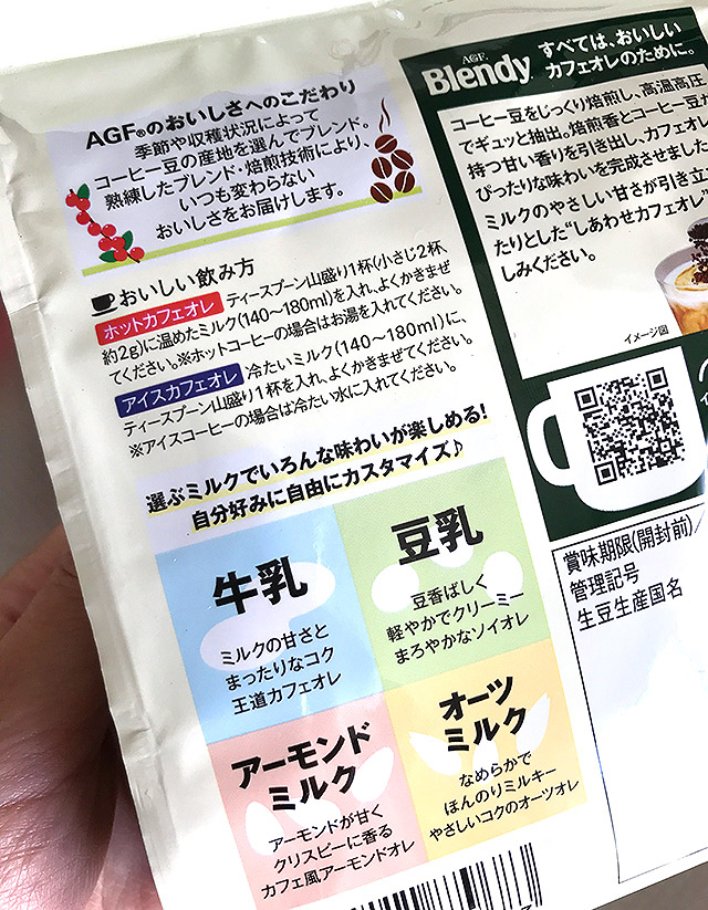 豊かなコクと香り、牛乳はもちろん、豆乳やアーモンドミルク、オーツミルクなどの植物性ミルクとも相性がよくて、さっと溶ける……その日の気分や好みに合わせていろいろなカフェオレを手軽に楽しめるのが、味の素AGF「ブレンディ」インスタントコーヒー。