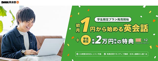 さらにオンライン英会話サービス DMM英会話では、約2万円分のレッスンチケットがもらえる学生限定プランも登場!