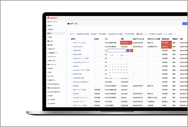 Salesforce のように高機能、kintone のようにノーコード編集、Excel のような操作性で、Salesforce からの乗り換え相談が昨年比300%まで飛躍したのが、純国産SFA「GoCoo!」(SALES GO)。