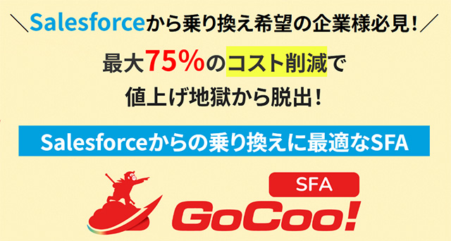 ―――こうした事情で、Salesforce から純国産SFA「GoCoo!」(SALES GO)へ移行する企業が急増。
