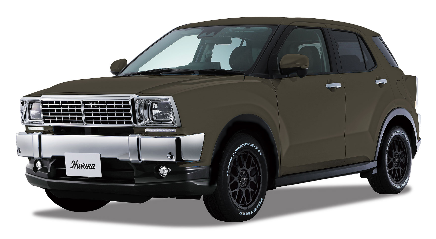 森や林のなかで、山道で、スタイリングが映えるアースカラー基調マット系ボディカラーは、ボディラッピングで実現。