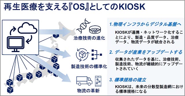 「KiOSK は、使用期限の短い培養細胞の品質を維持して患者に届けるために、医療機関の近くで最終加工を行う細胞製造ユニットです。