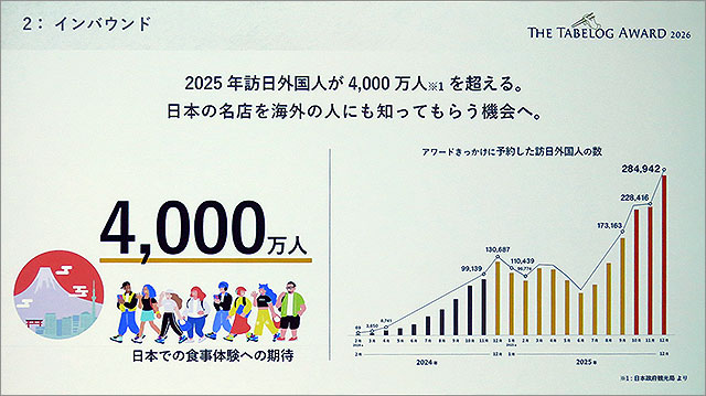 こうした海外のお客様と「日本の食」をしっかりと結びつける役割を、The Tabelog Award は担っていきたいと思っています。