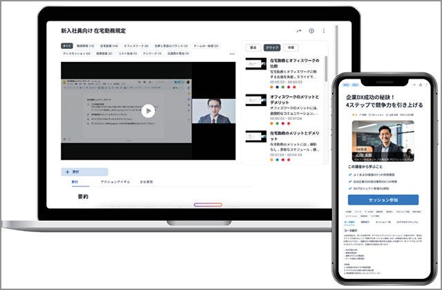スキルアップ・サプリの AI 分析機能やモバイル視聴をそのまま活用でき、社内資産の価値を高める。