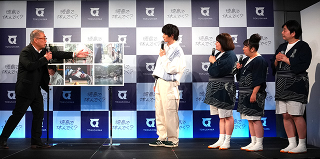 今回の新CM(2/2~首都圏エリア(東京・神奈川・千葉・埼玉・群馬・茨城・栃木)でオンエア)では、徳島のゆったりとした時間、景色、食、文化がたっぷり120%詰まってますので、ぜひ観てみてください」(犬飼貴丈)