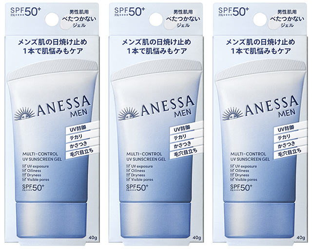 そこでアネッサは、紫外線ケアに加え、「テカリ」「かさつき」「毛穴目立ち」など、男性特有の肌悩みをマルチにケアする「アネッサ マルチ コントロールUV ジェル」の発売により、男性がスキンケア感覚で紫外線ケアを行える新習慣の創造をめざします。