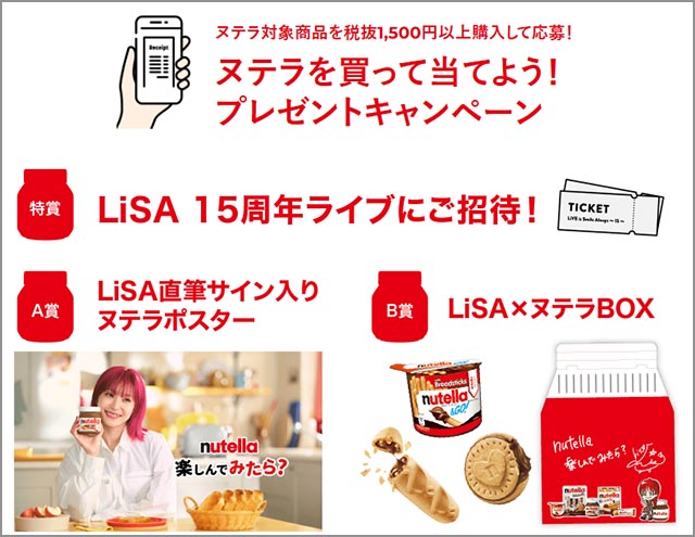 A賞は LiSA 直筆サイン入りヌテラポスター、B賞は LiSA ×ヌテラBOX だから、みんなでチャレンジ↓↓↓