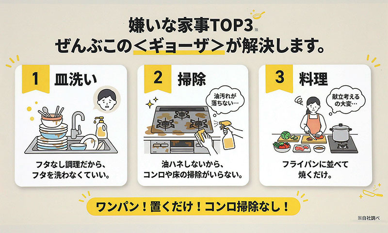 AJINOMOTOギョーザは油ハネなし!