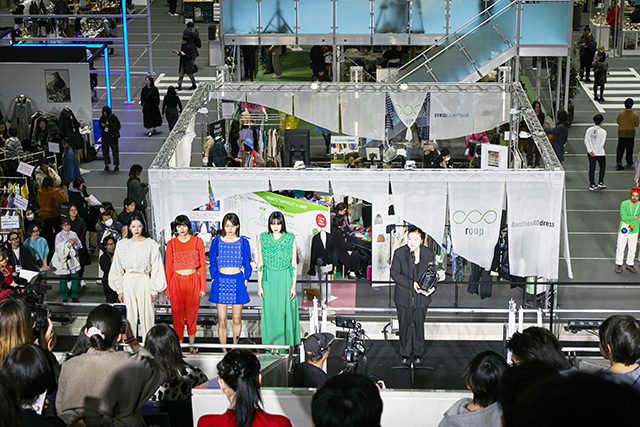 大丸松坂屋百貨店「AnotherADdress」は、顧客から回収した思い入れのある衣類を、プロのデザイナーや学生たちが新たなデザインへと生まれ変わらせ、完成度や表現力を競うファッションデザインコンテスト『roop Award 2025-2026』の最終審査・授賞式を、3月22日「Rakuten Fashion Week TOKYO2026 A/W」で同時開催。
