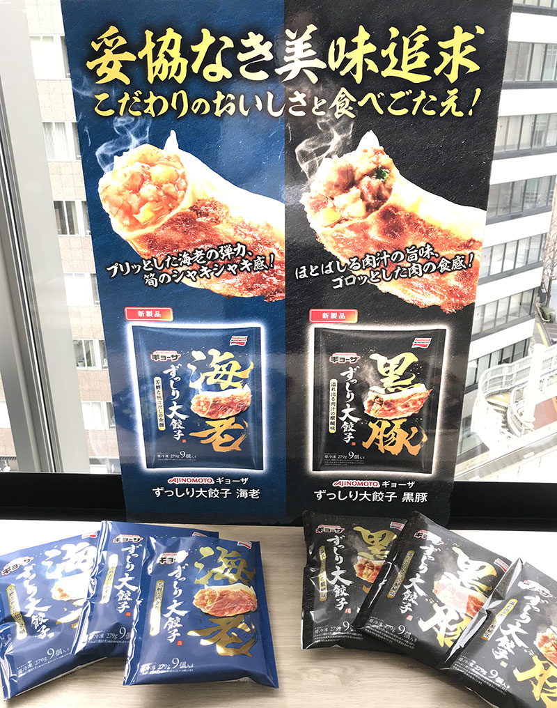 味の素冷凍食品が全国に投下した「本格中華店の餃子」が、「ずっしり大餃子」シリーズ2品<ずっしり大餃子 海老><ずっしり大餃子 黒豚>。