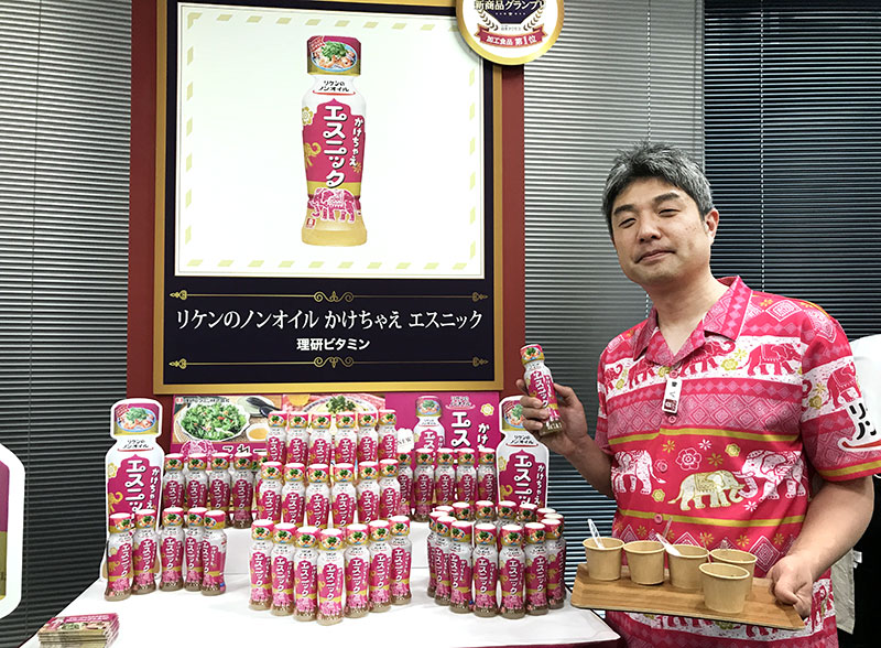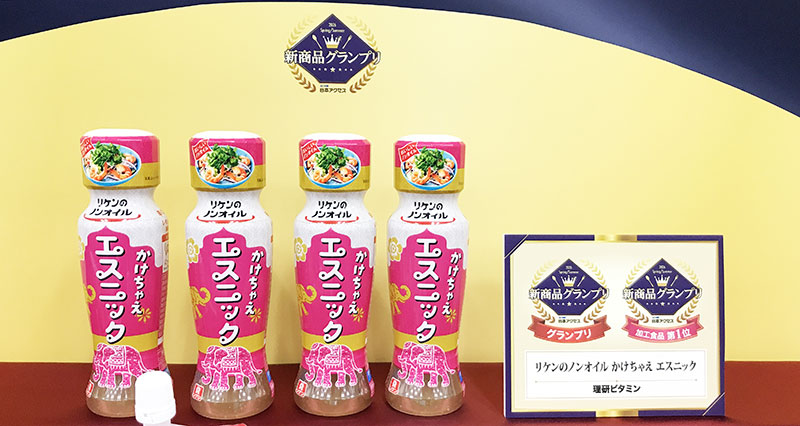 日本アクセス「新商品グランプリ 2026 年春夏」グランプリ商品に輝いたのは、理研ビタミン『リケンのノンオイル かけちゃえ エスニック』(発売中/265円)。
