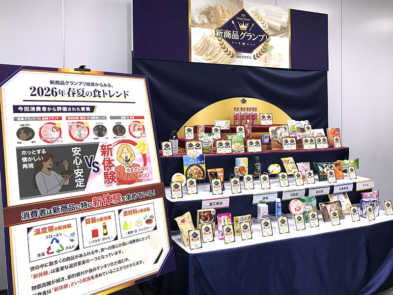 日本アクセス「新商品グランプリ 2026 年春夏」は、⽇本アクセス公式 LINE 登録者 6万⼈のなかから審査員を募集し、今回は東⻄合計120名が、1⽉開催 東⻄フードコンベンションに参加し、そこで試⾷審査しグランプリを決めるというレースで、直接的な消費者の声が反映されている結果として毎回注目を集めている。