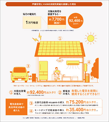 昼間に太陽光でつくった電気を蓄電池にためて夜に使ったり、夜間の割安な電力をためて昼間に使ったりすることで、電力需給のピークカットに貢献しながら、光熱費をコントロールできる。