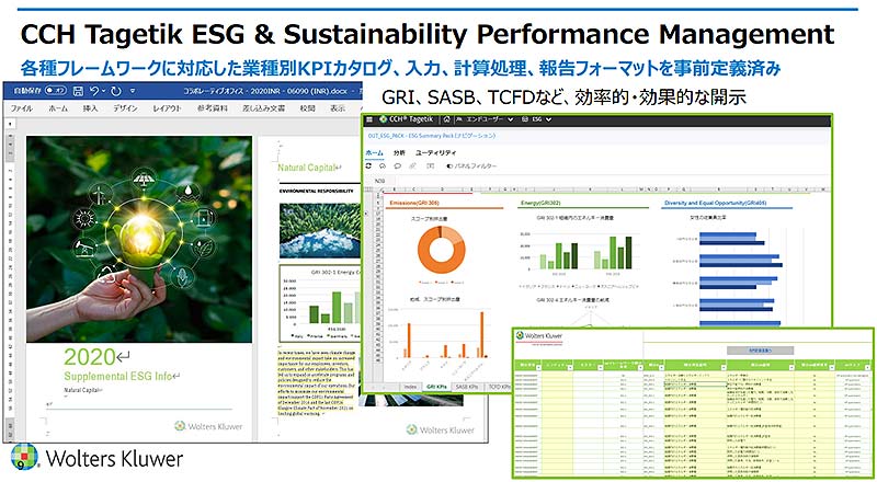 医療、税務・会計、ガバナンス、リスク管理とコンプライアンス、法務・規制、経営管理・ESG の各分野における専門情報、ソフトウェアソリューションとサービスのグローバルリーダー、Wolters Kluwer(ウォルターズ・クルワー:Tagetik Japan)は4月18日、経営管理プラットフォーム「CCH Tagetik」のアップデート版「CCH Tagetik ESG & Sustainability Performance Management」を発表。