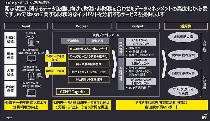 ウォルターズ・クルワーはまた、昨年発表した EY とのグローバルアライアンスの継続的な拡大を受け、EY が日本においても経営管理ソリューション CCH Tagetik による大規模な経営管理プロジェクトの支援を可能にしました」