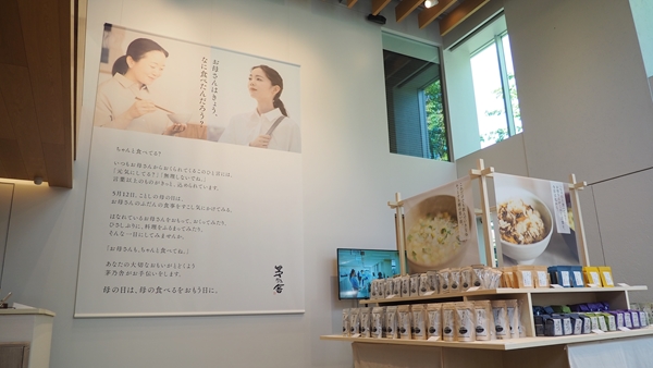 母は約7割(68.8%)が子供の健康や食生活を気にかけるが、子供は母の普段の食生活に関心が薄く、半数以上(56.9%)が普段母が何を食べているのか知らない(※調査結果詳細は記事末尾に記載)。そこで茅乃舎は今年「母の日は、母の食べるをおもう日に。」をテーマに掲げ、母の食や心身の健康を気づかうきっかけにすべく出店した。