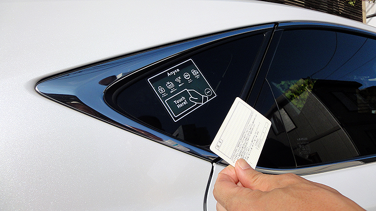 タイムズカーシェアなどと同じ感覚で、クルマの後席窓についているカードリーダーに運転免許証をかざしてピッとやるだけで、クルマの解錠・施錠ができて、スタートさせることができる。