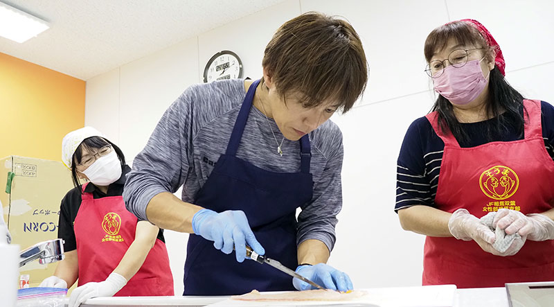 「ヒラメの捌き方教室」では、相馬双葉漁協女性部の人たちを講師に迎え、参加者はヒラメの捌き方とコツを体得。