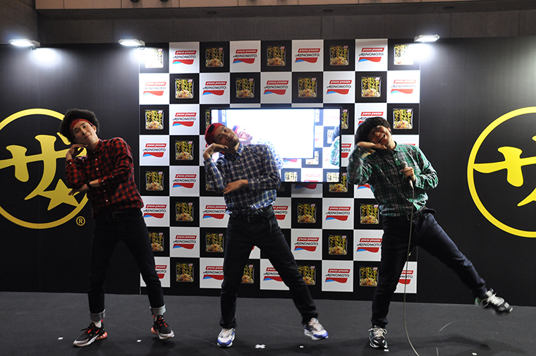 レペゼン秋葉原 アニソンダンスパフォーマー「RAB(リアルアキバボーイズ)」の5人は、ニコニコ動画ユーザーにはおなじみの和田たけあきが手がけた「ザ★チャーハン」のイメージソングに乗せてダンスパフォーマンス。