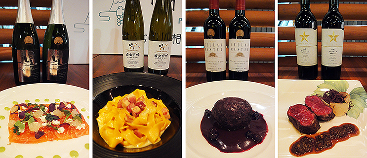 会場には、ワイン県知事で山梨県知事の長崎幸太郎知事、山梨市出身の作家 林真理子(ワイン県副知事)、そして 田崎真也(ワイン県副知事)も駆けつけ、いま最も注目されている山梨ワインと絶品ごはんを確かめた。