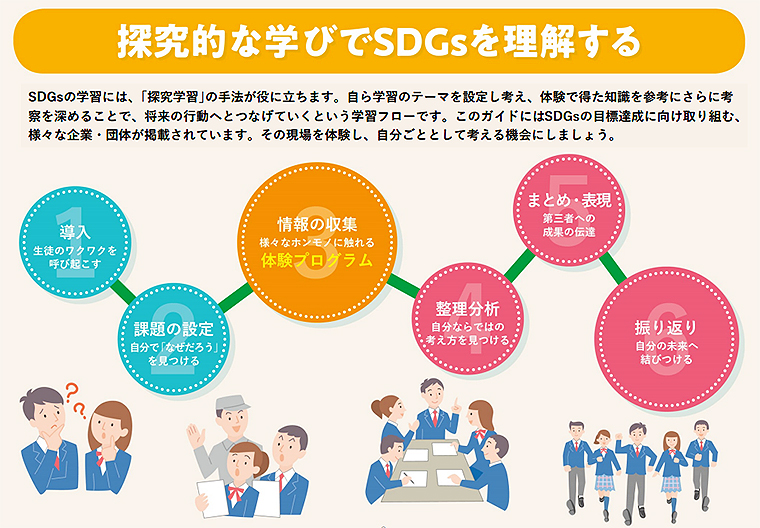 この横浜SDGs探究学習ガイドは、小中学校・高校の探究学習にむけた、SDGs探究学習プログラムをパッケージし、学校側にはこの横浜SDGs探究学習ガイドをチョイスすることで、手間なくかんたんにSDGs探究学習が実現できるというメリットがある。