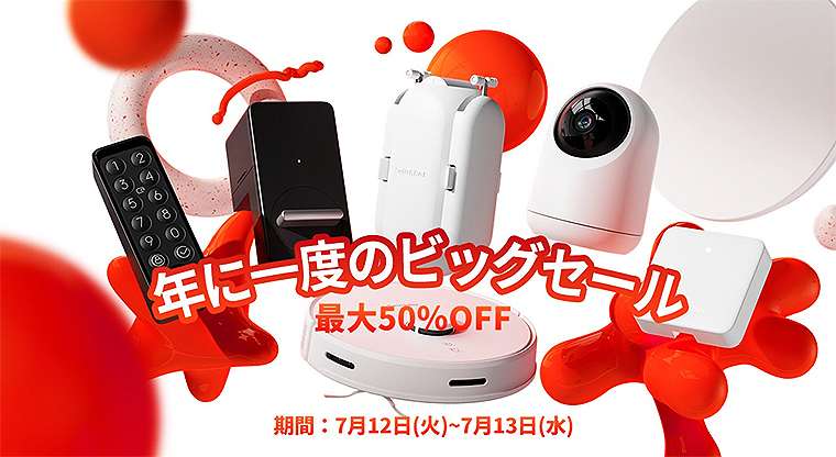 いっぽう、SWITCHBOT も人気製品が最大50%OFFとなる特別セールを展開。「SwitchBot シーリングライト/シーリングライトプロ」「SwitchBot ロボット掃除機S1/S1Plus」「SwitchBot キーパッド/キーパッドタッチ」「SwitchBot 屋外カメラ」「SwitchBot 見守りカメラ3MP」などがセール特価で登場するから、気になる人は公式サイトをチェックしてみて↓↓↓