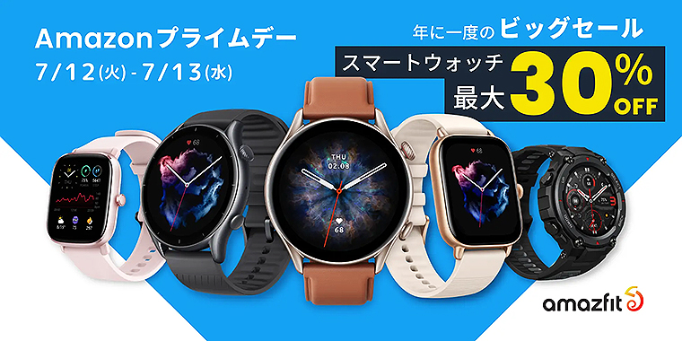 そのほか、「Amazfit T-Rex 2」「Amazfit T-Rex Pro」「Amazfit GTS 2 mini」「Amazfit GTR 3」「Amazfit GTR 3 PRO」「Amazfit GTS 3」なども2日間のセール特価でゲットできるから、気になる人はラインナップをチェック↓↓↓