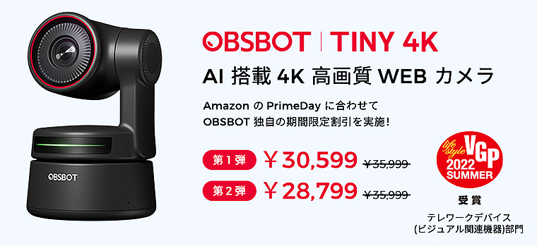 「OBSBOT Tiny 4K」(オブスボットタイニーヨンケー)は、4K解像度の高画質でWEB会議からオンラインレッスン、友人とのビデオ通話など、ビジネスからプライベートまで、リモートのコミュニケーションをよりスマートに、より楽しくするWEBカメラ。